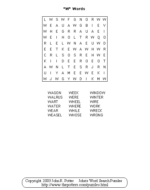 'W' Words Puzzle